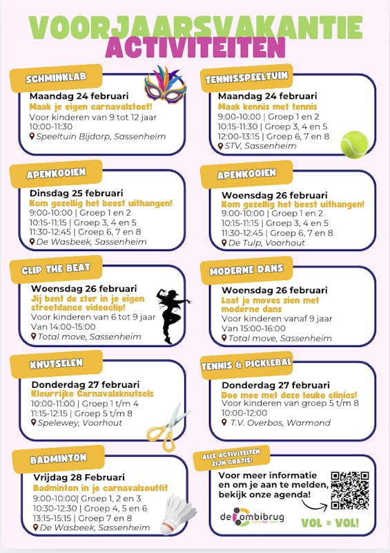 Wil je dat jouw kind actief en creatief bezig blijft deze Voorjaarsvakantie? De Combibrug organiseert verschillende activiteiten voor kinderen deze vakantie. Zie hier een aantal van onze activiteiten: